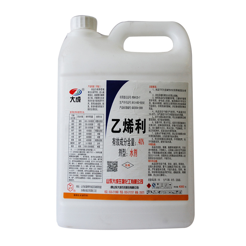 本品为催熟型植物生长调节剂,进入植物体后,能缓慢分解释放乙烯,对植物生长发育的许多方面有调节作用,具有加速成熟、脱落、衰老以及促进开花等效应。用于棉花、番茄、柿子、水稻、香蕉等作物的增产作用优于其他的产品。